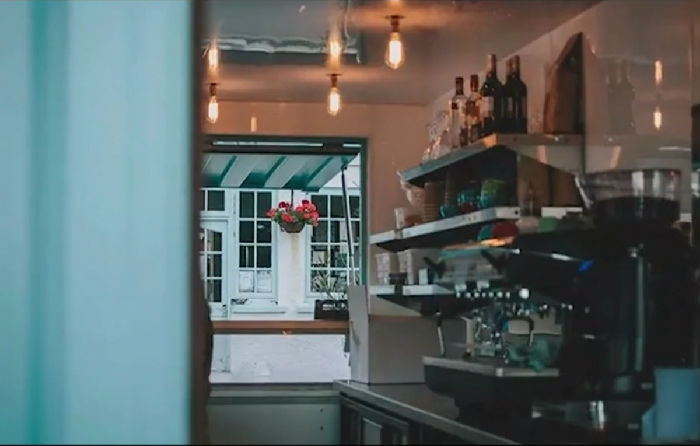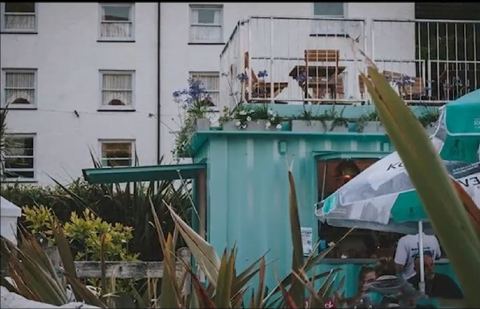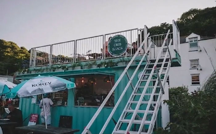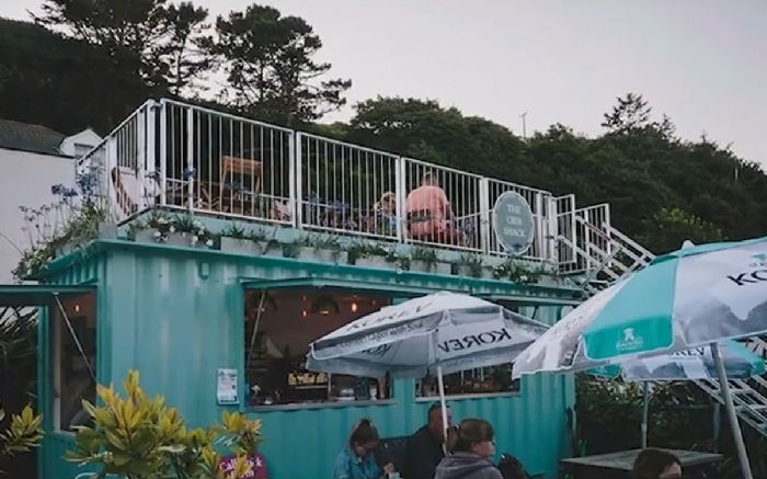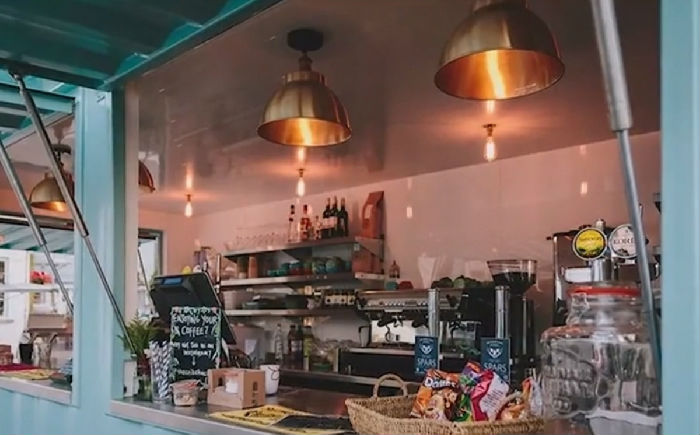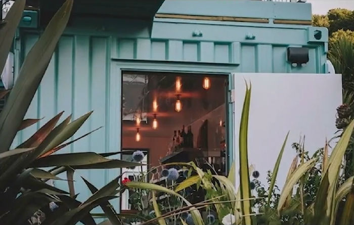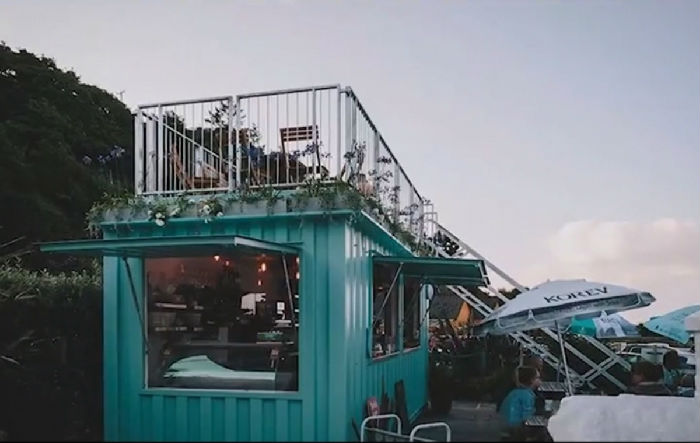这是由一个3*6米的集装箱建筑而成的集装箱咖啡馆,配有可拆卸楼梯额折叠式露台,箱体是海水蓝配色,让人看起来非常的清新,放松。集装箱咖啡馆设有3个窗口,挡板打开可以提供全方位的服务,侧面还有供工作人员出入的门口。室内设有天然的木饰面和工业黄铜吊灯照明,看起来文雅安静,十分温馨。二楼露台还可以摆放桌椅做就餐区。再买点花和植物做点缀,让用餐者用餐时更身心愉悦。
