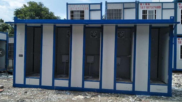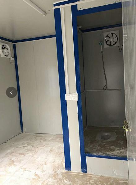 3:活动集装箱厕所(1位至5位),里面配置花洒、水龙头、水管、便池、排粪管、水箱、电、插头、排气扇等。接上电源和排粪管就可使用了。