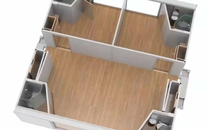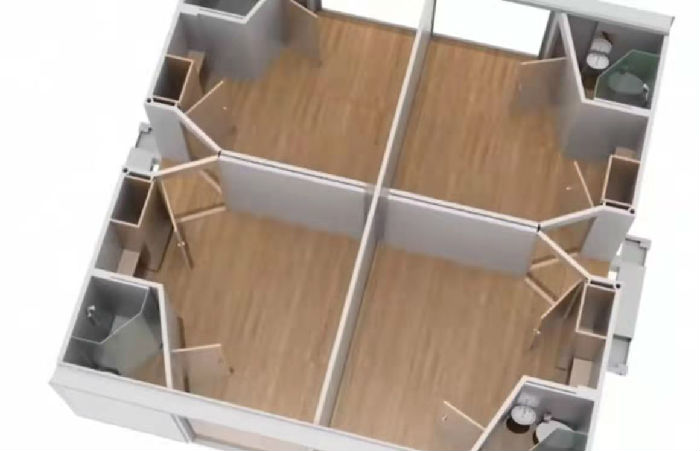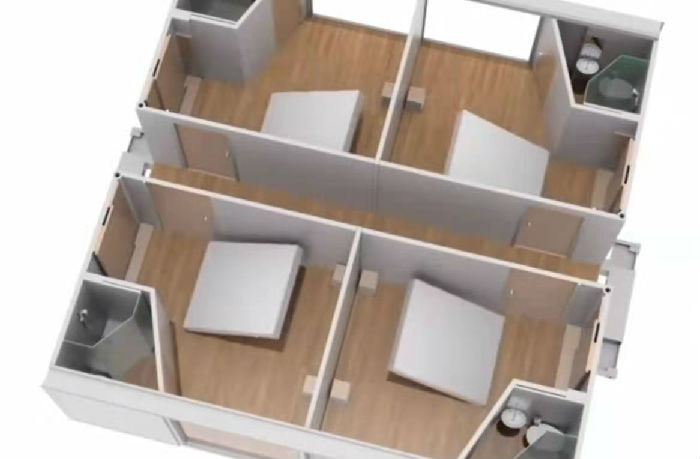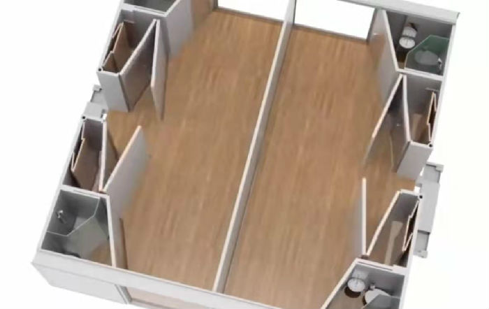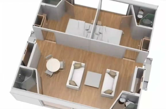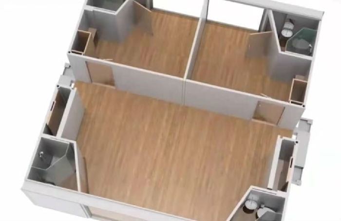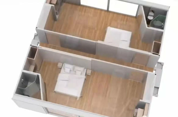 【钜人箱房-集装箱房租赁4元/天起,大波纹6000起!  联系电话:18718737885 欢迎咨询!】 科技越来越发达了,我们的集装箱房屋也越做越好,可以说是72变了,今天我们来看看72变的配套式集装箱隔离房,可以随意变换的配装式集装箱隔离房,下面我们一起来看看,首先配装式集装箱隔离房的各个部位在工厂提前预置好,然后根据实际需求变化成不同的格局,受到技术和现实的影响,这种房子多以打包箱代替,搭建速度快,可根据需要进行拼接,如图下面
